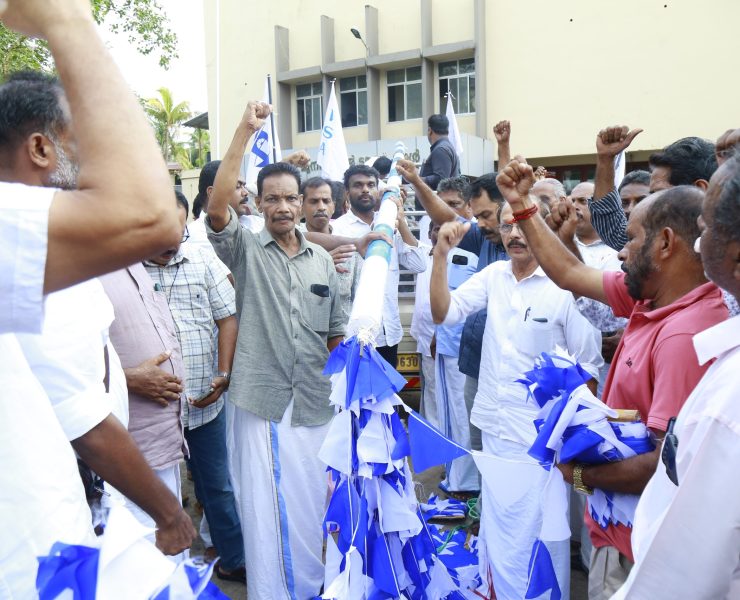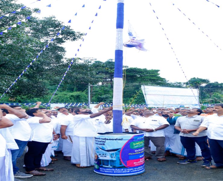 കൊടിമര ജാഥ സമ്മേളന നഗരിയിൽ പ്രവേശിച്ചപ്പോൾ ഭാരവാഹികൾ അഭിവാദ്യം ചെയ്യുന്നു.